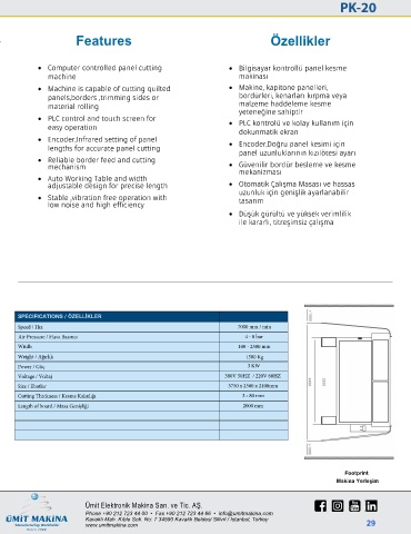 • Machine is capable of cutting quilted • Makine, kapitone panelleri,